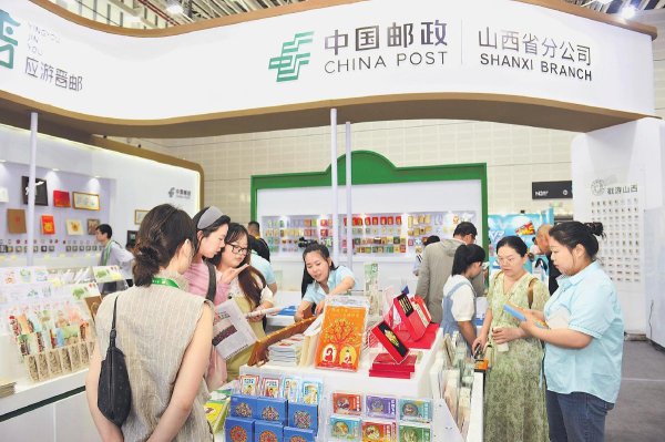 8月21日至25日,第七届山西文化产业博览交易会在太原举行,近2000家国内外企业参会。山西省邮政分公司精心打造限量邮品、集戳打卡、新品展示三大核心体验,定制大会纪念封2枚、纪念邮折2套、纪念戳1枚。同时,以“邮票上的山西”“戳游三晋”“把美丽山西寄出去”为核心,推出丰富多彩的文化创意产品和现场体验活动,让观众深度感受“晋善晋美”的文化魅力。