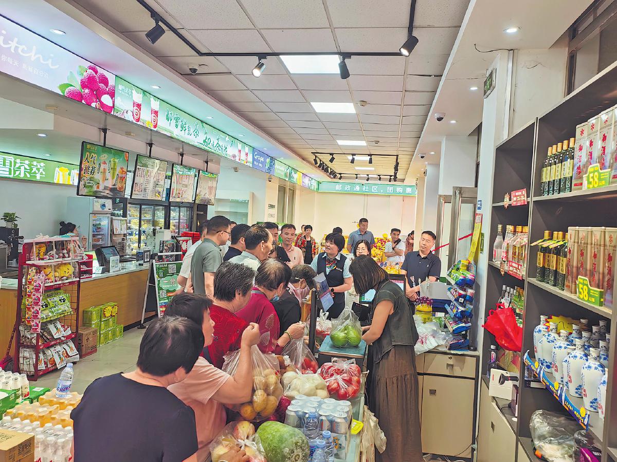 开封邮政严选优质农产品,带动社区团购店销售火爆。□赵新峰 摄