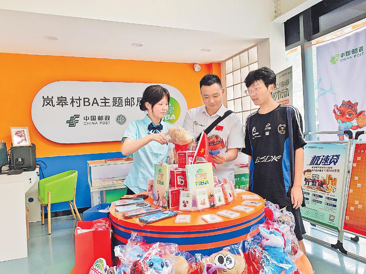 走进位于“岚皋村BA”赛场一侧的主题邮局,满满的“村BA”文化气息扑面而来。这里精心陈列着专门为“村BA”赛事定制开发的明信片、首日封、个性化邮折等邮政特色产品,以及吉祥物毛绒玩具、冰箱贴、托特包等新潮的文创周边。每一件商品都承载着“村BA”的精彩瞬间和乡村体育的独特魅力,成为传播“村BA”文化的重要载体。