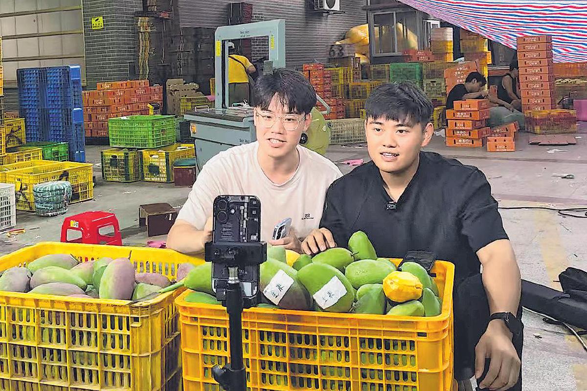 邮政在芒果仓库现场开展直播助销。