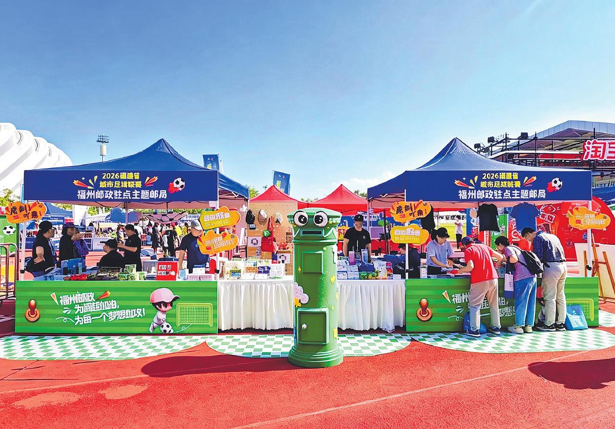 4月19日,2026年福建省城市足球联赛(“闽超”)拉开帷幕。福州市邮政分公司将服务“闽超”作为融入地方文体经济的重要抓手,与“闽超”福州赛区深度合作,获得了“闽超”福州足球队官方IP授权和比赛场地核心区域广告权限。比赛当日,福州市分公司在福州海峡奥体中心核心区域设立“闽超”主题临时邮局,推出多款赛事专属纪念邮戳及产品,将绿茵豪情与福州元素浓缩于方寸之上。纪念邮折、纪念封、福州足球队队徽套装等产品获得赛事组委会重点推介。