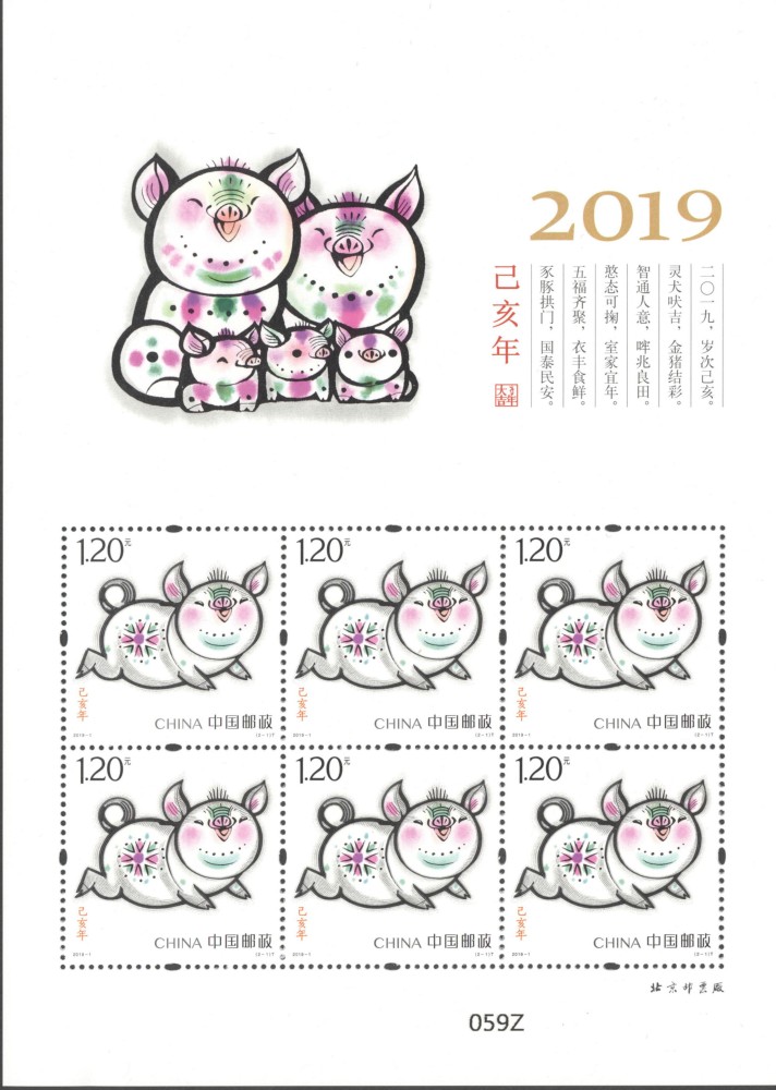 中国邮政定于2019年1月5日发行《己亥年》特种邮票1套2枚,小本票1本。详情如下: