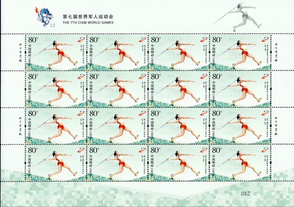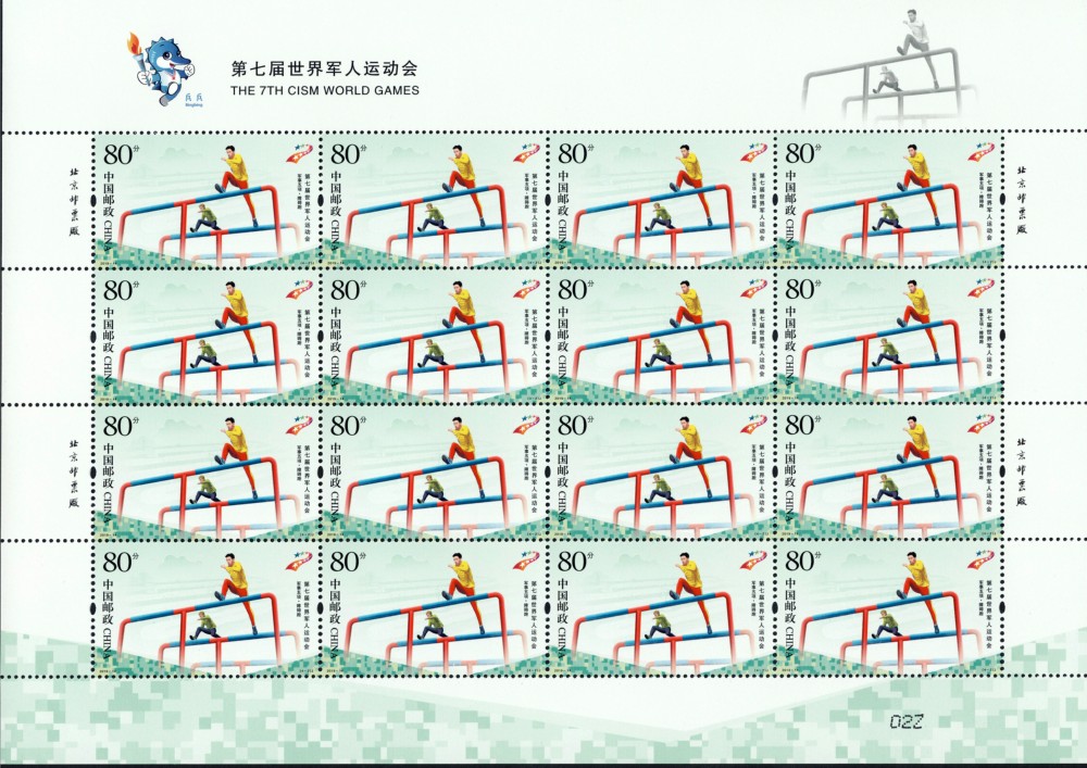 中国邮政定于2019年7月10日发行《第七届世界军人运动会》纪念邮票1套4枚。详情如下: